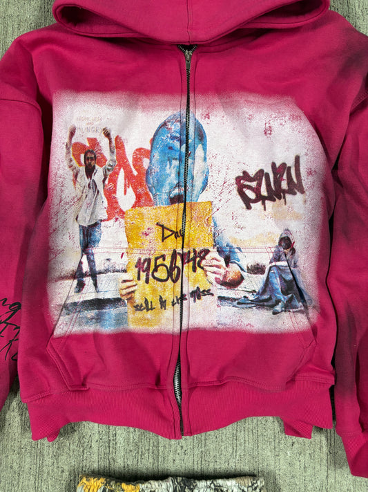 “Life sucks”distressed zip up